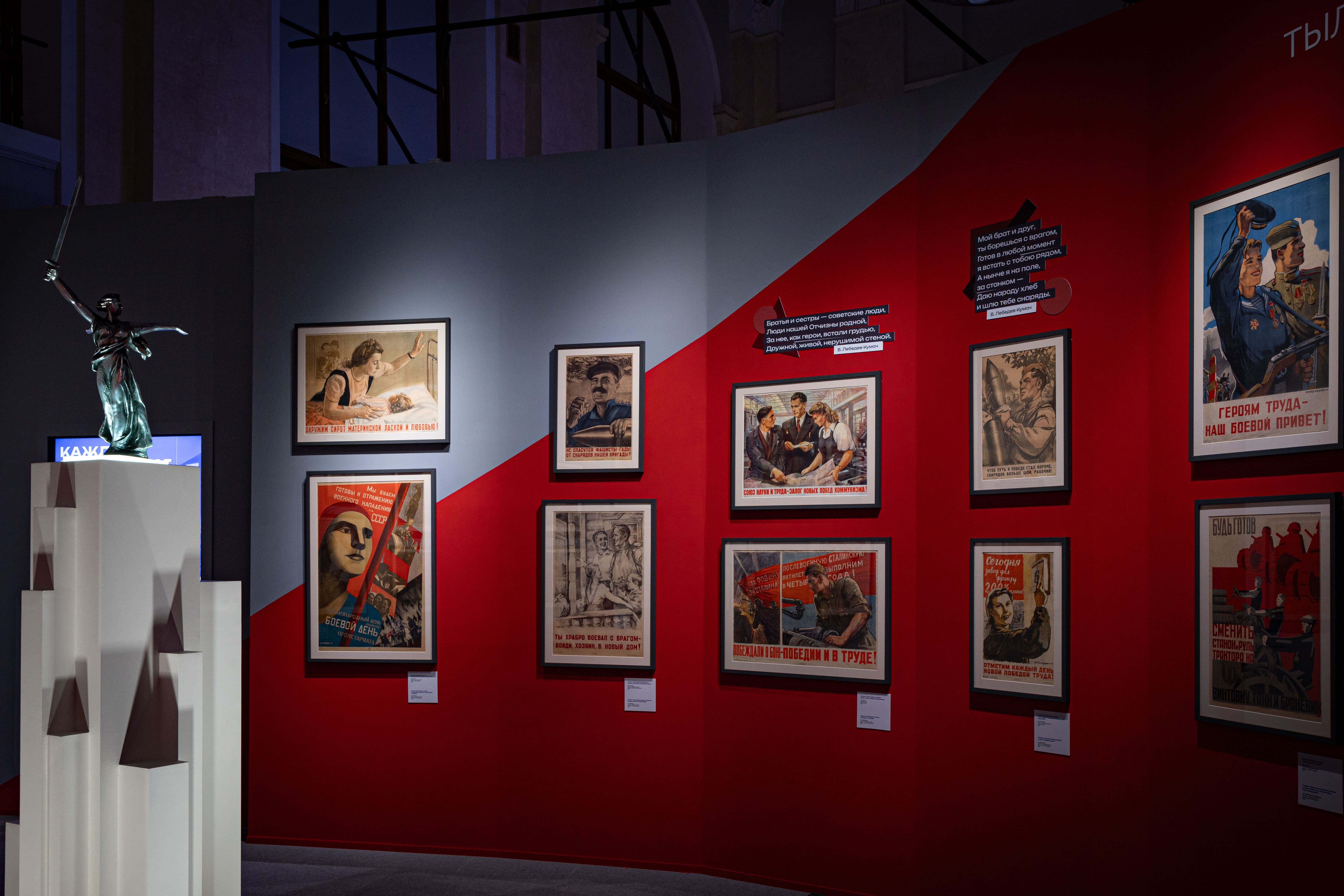 Выставка представляет масштабную инсталляцию, посвященную искусству советского плаката – яркого художественного явления ХХ века. В экспозиции представлены сотни плакатов известных авторов из музеев, архивов, частных коллекций. Выставка поделена на пять тематических зон.