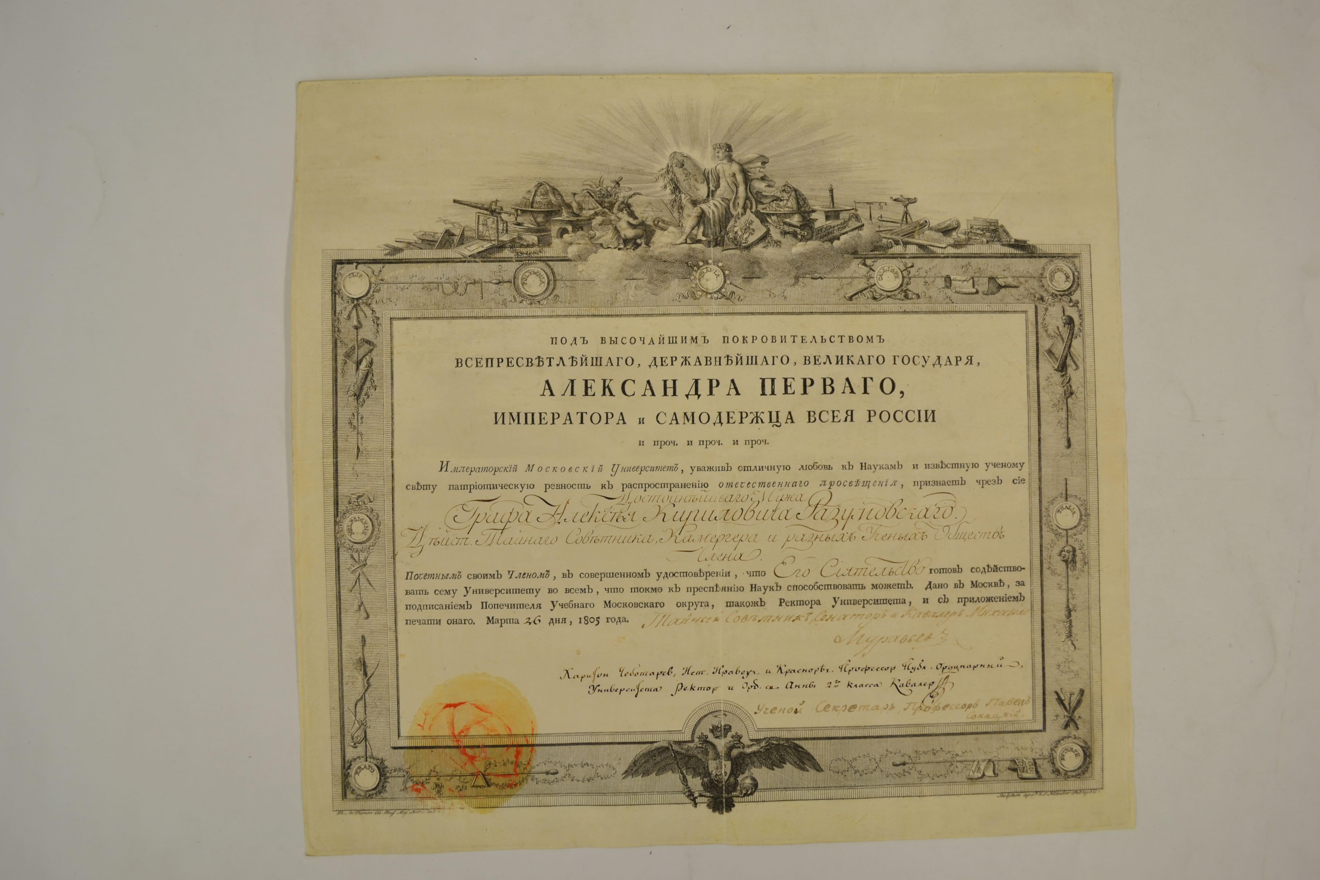 Первый раздел выставки рассказывает об основании Московского университета, знаменитых студентах и преподавателях, покровителях и меценатах XVIII века. Особыми событиями первых десятилетий жизни высшего учебного заведения были университетские торжества, которые являлись средством формирования в русском обществе идеи о служении Науке, способом презентации деяний просвещенного монарха в России и за ее пределами. Центральным экспонатом станет первый Устав Московского университета 1804 года, подписанный императором Александром I. На выставке так же представлены артефакты, относящиеся к истории Земского приказа, на месте которого сегодня возвышается здание Исторического музея.