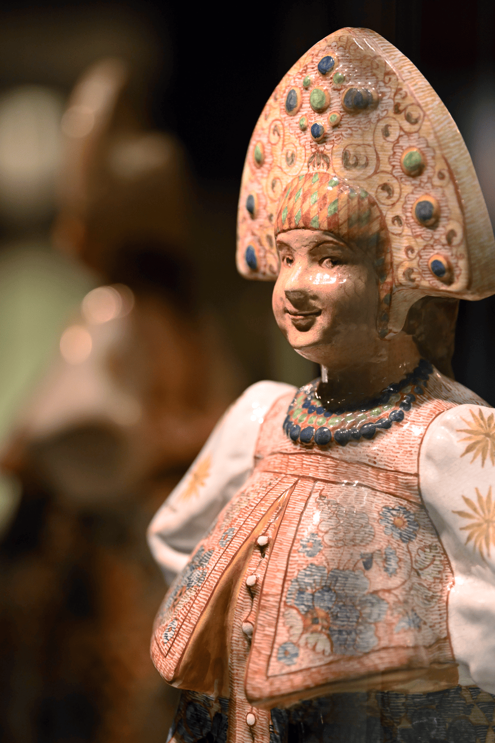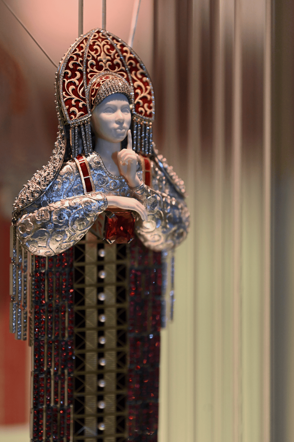 Одним из самых значимых экспонатов выставки и первым объектом большого проекта Ильгиза Фазулзянова «Наследие», является ювелирное произведение «Русь». Это уникальное произведение, выполненное с использованием финифти, скани, зерни, резьбы из кости и горячей ювелирной эмали в авторских техниках Ильгиза Фазулзянова, олицетворяющее богатство и разнообразие русского народного костюма.