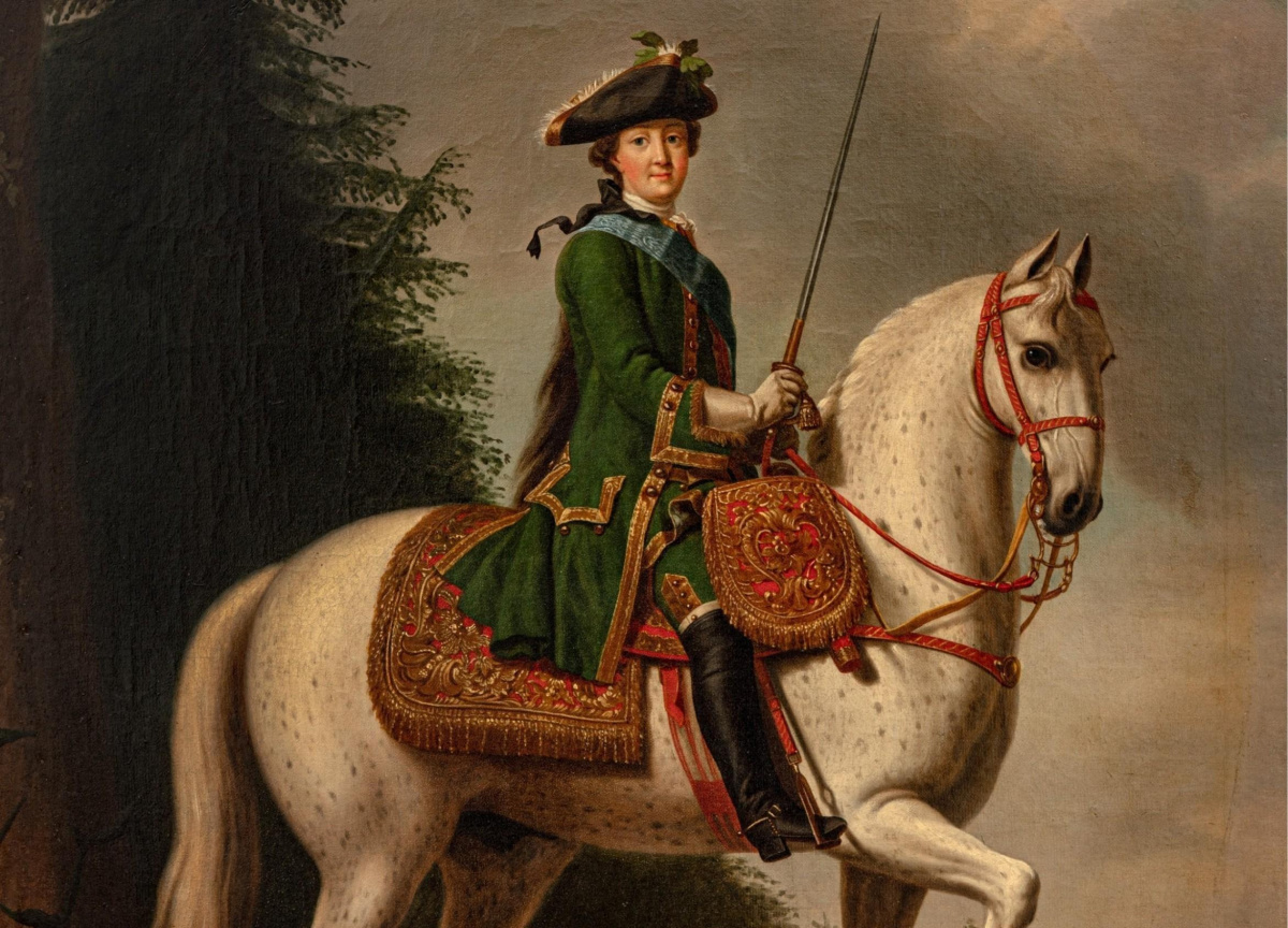 Специальный раздел выставки посвящен русским военным мундирам, представленным в музейном собрании во всем многообразии. Наряду с мундирами императоров и великих князей в коллекции хранятся детские мундиры царственных наследников и дамское мундирное платье императриц и великих княжон. Одно из них – шефское мундирное платье Екатерины II по форме Лейб-гвардии Семеновского полка, выполненное из бархата с отделкой из золоченого галуна, вошло в состав выставки.