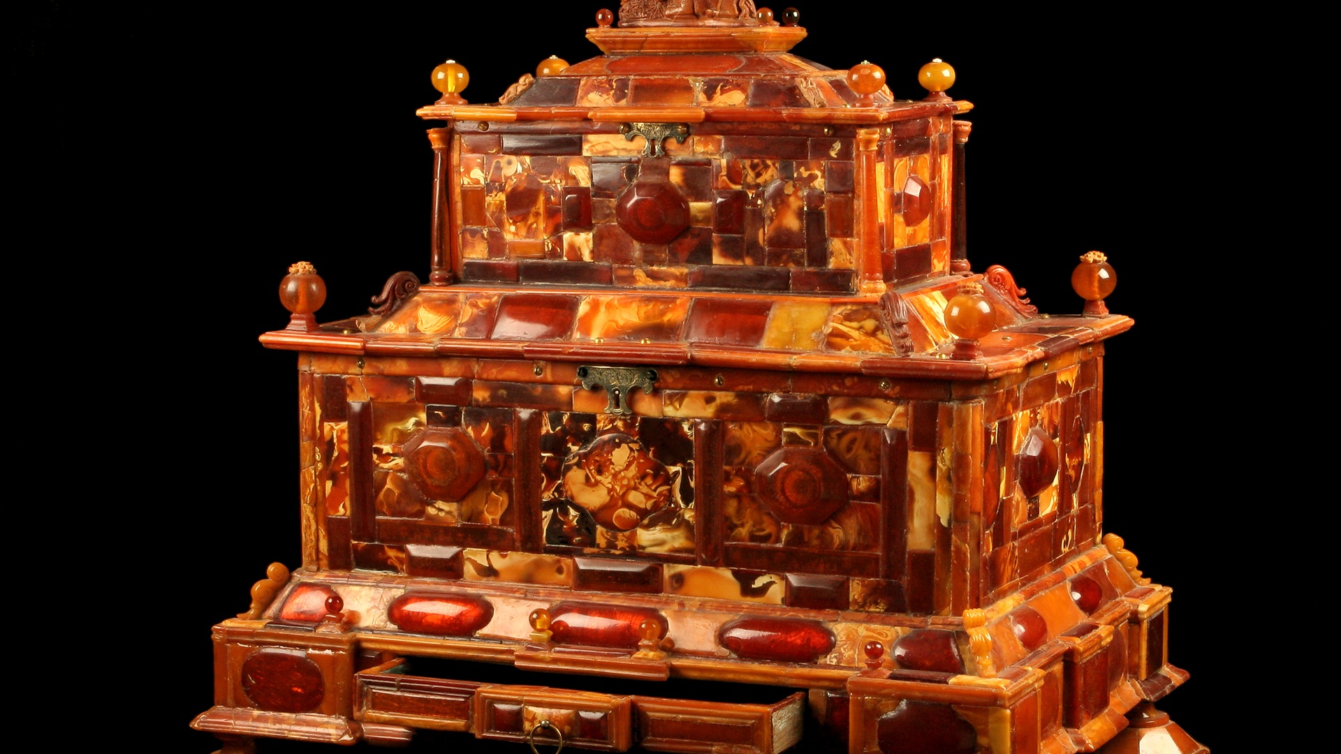 Особая коллекция, являющаяся символом Царского Села, объединила произведения, выполненные из янтаря XVII – начала XVIII в.: шкатулки, доски для игры в шашки, шахматы и трик-трак, предметы личного обихода. Возникновение этих раритетов связано с приобретением Петром I панелей Янтарного кабинета, изготовленных немецкими мастерами для прусского короля. Оригинальная Янтарная комната была утрачена в годы Великой Отечественной войны и воссоздана в 1979–2003 гг. Но уникальная коллекция небольших по размеру предметов из янтаря, сформировавшаяся в резиденции за полтора столетия существования Янтарной комнаты, была вывезена в эвакуацию и сохранилась. На выставке посетители получат редкую возможность увидеть шедевры этого собрания, которые обычно находятся в фондах музея.