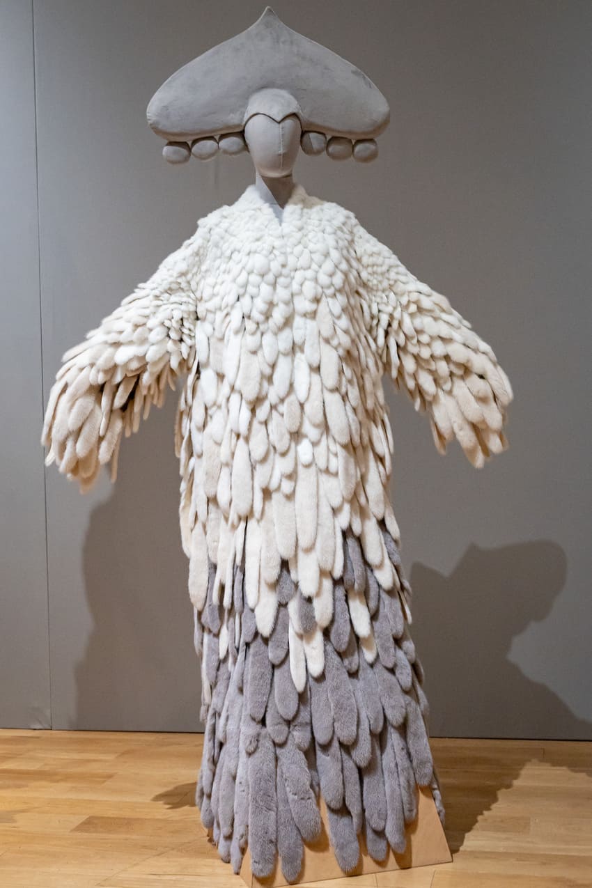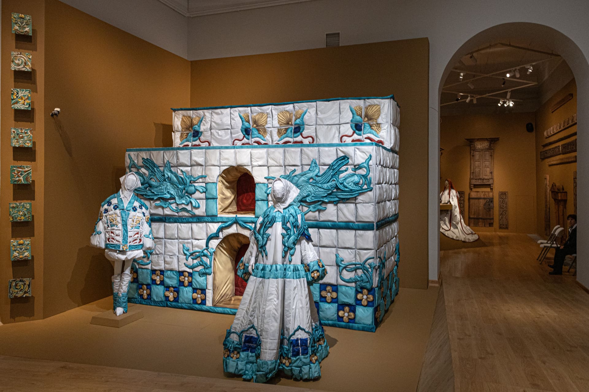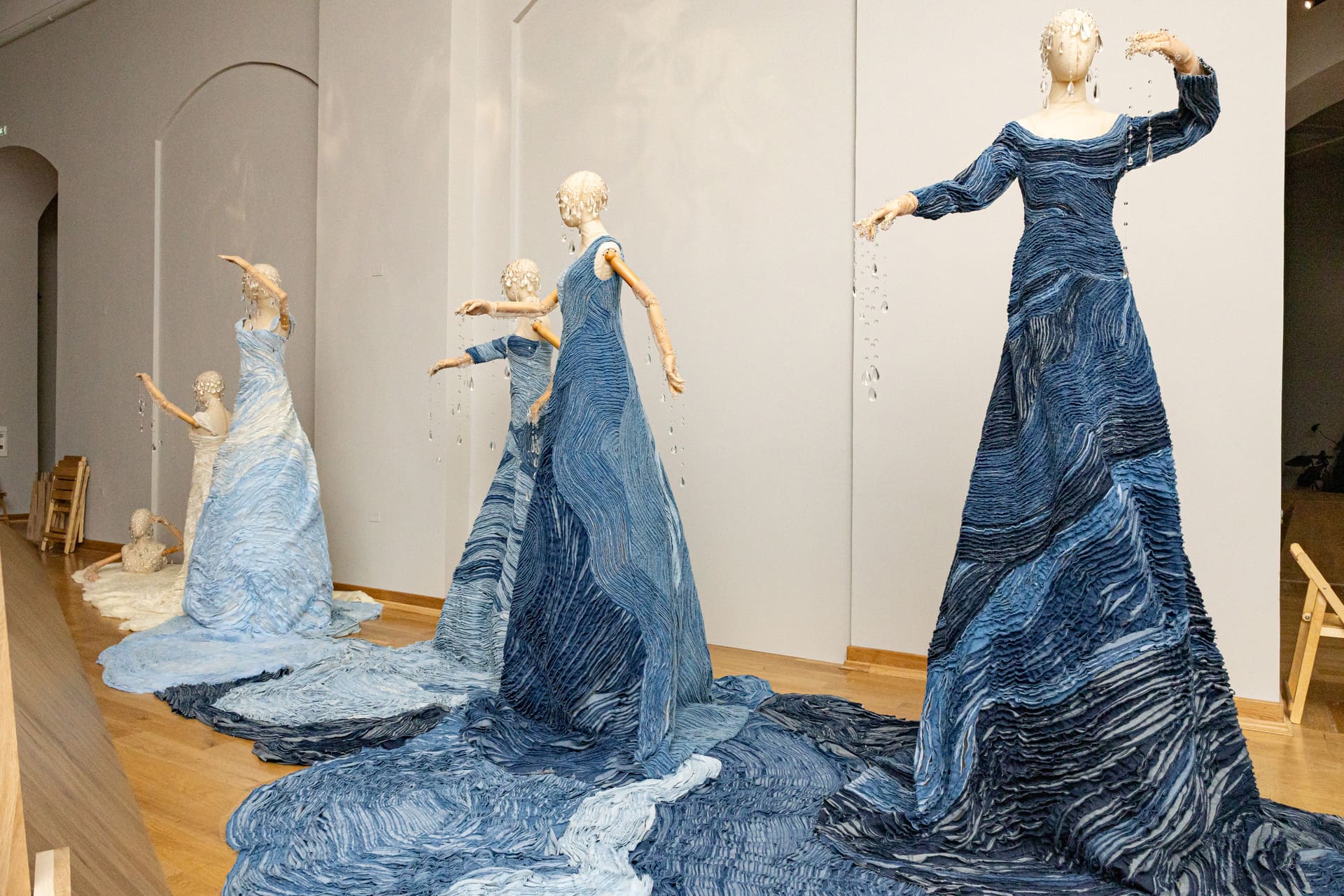 Особое место в экспозиции займут платье «Божественная Майя» (2015) из собрания Государственного Эрмитажа, посвящённое памяти великой русской балерины Майи Плисецкой, а также кутюрное платье из уникального эко-материала Тайвек (2025), созданное ко Дню Земли. Другие модели были созданы эксклюзивно для выставки.