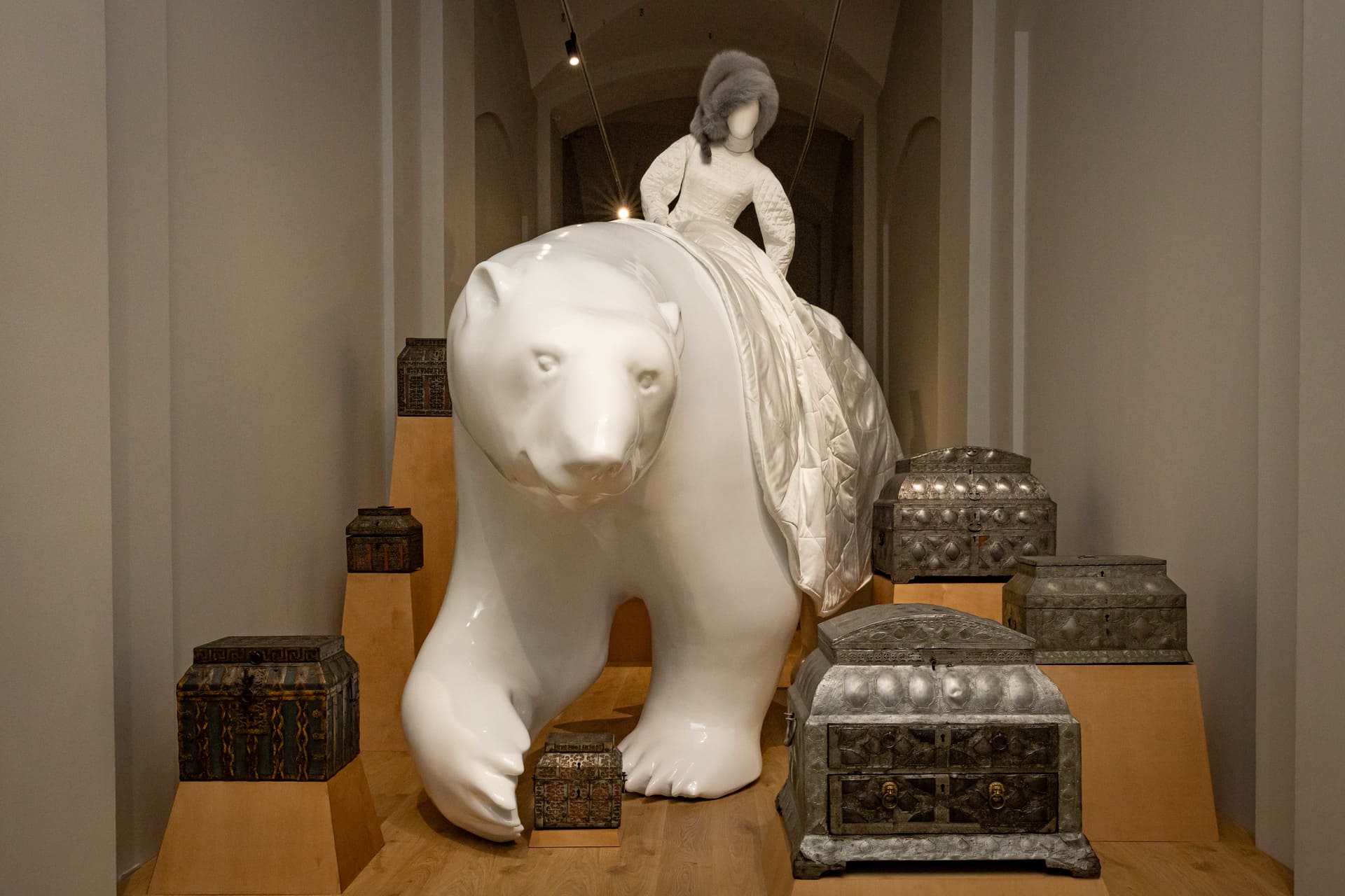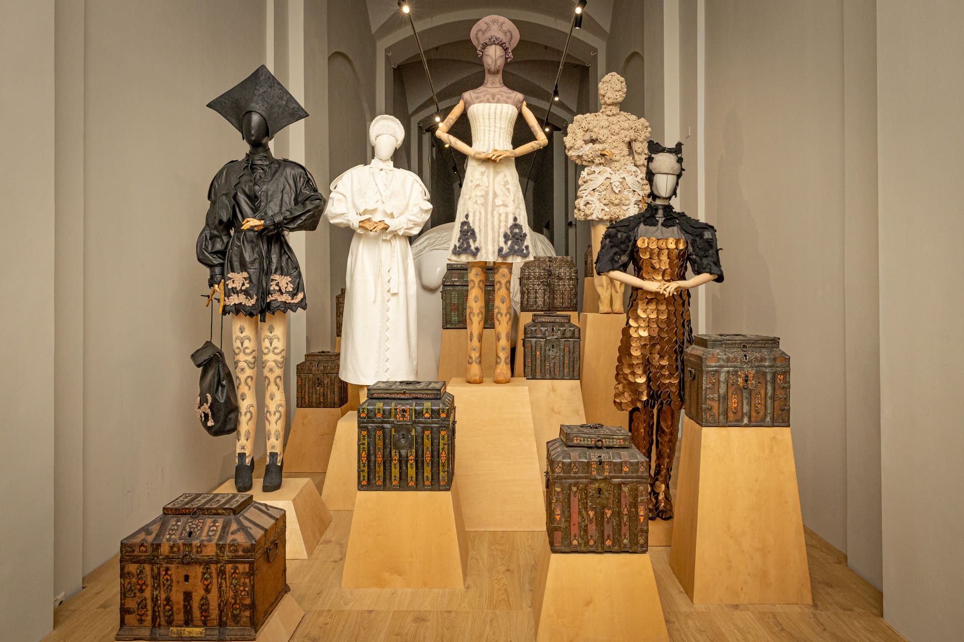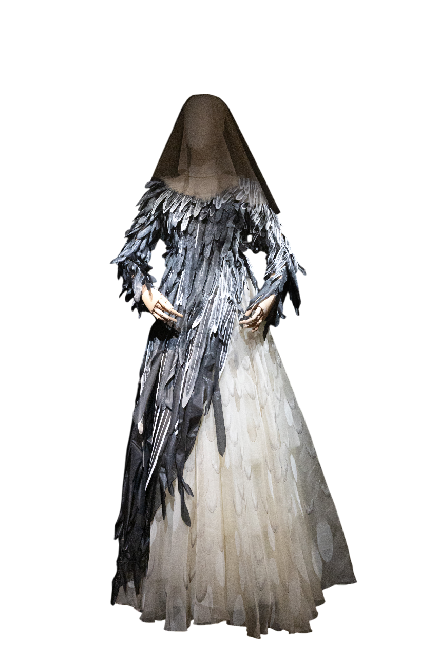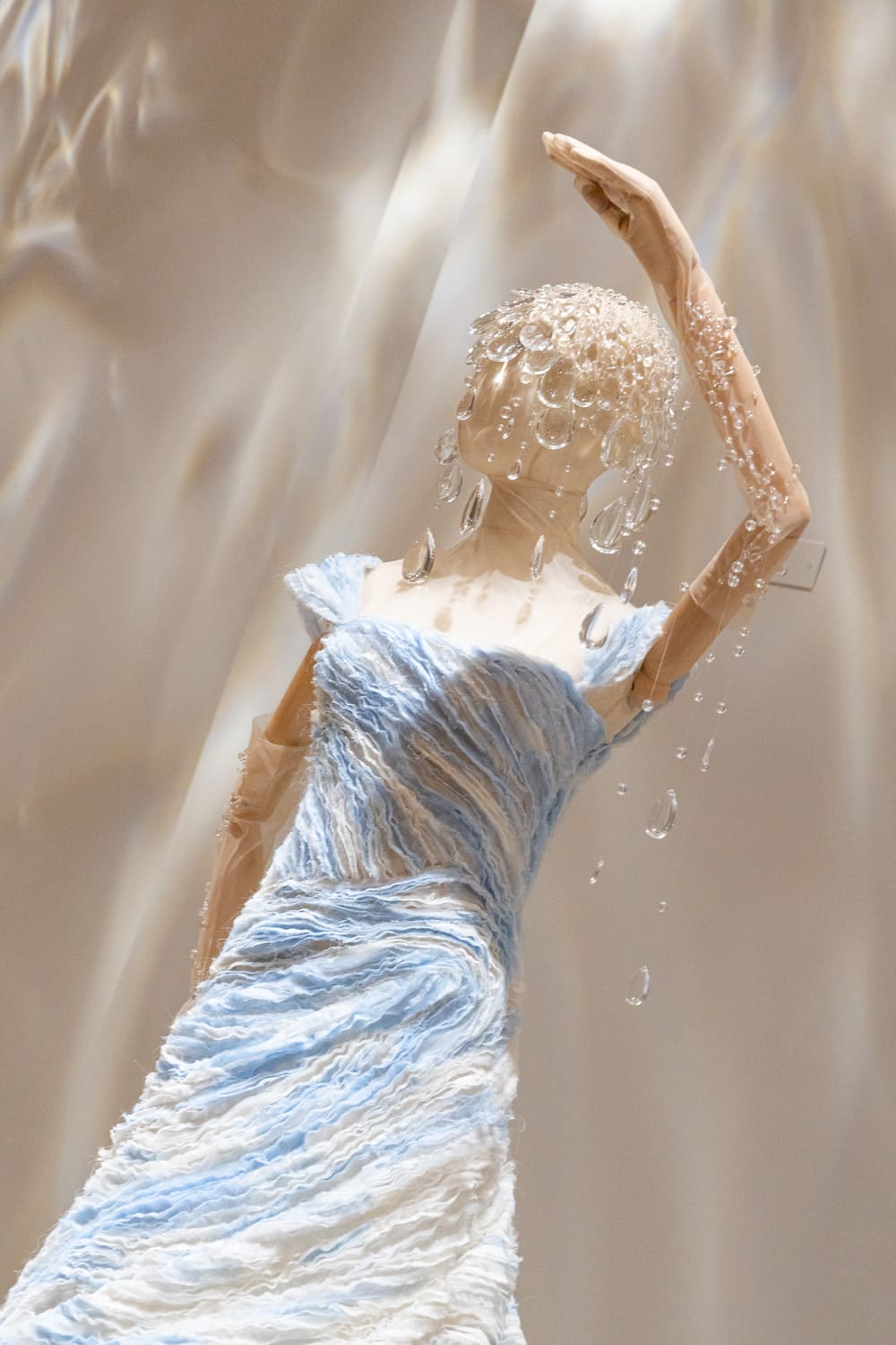Особое место в экспозиции займут платье «Божественная Майя» (2015) из собрания Государственного Эрмитажа, посвящённое памяти великой русской балерины Майи Плисецкой, а также кутюрное платье из уникального эко-материала Тайвек (2025), созданное ко Дню Земли. Другие модели были созданы эксклюзивно для выставки.