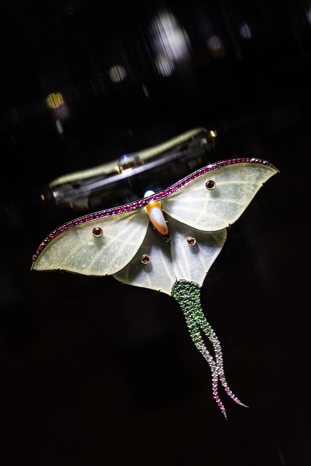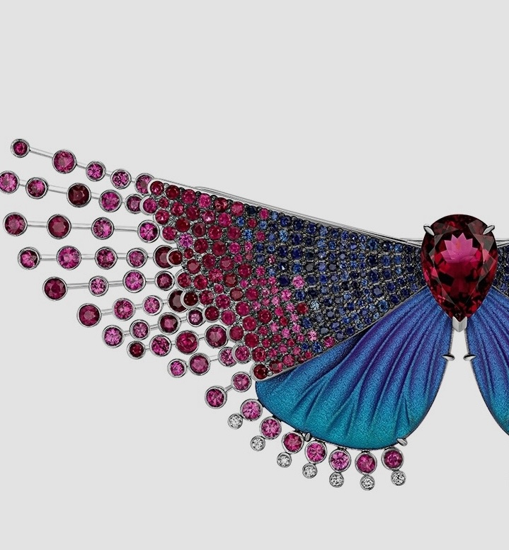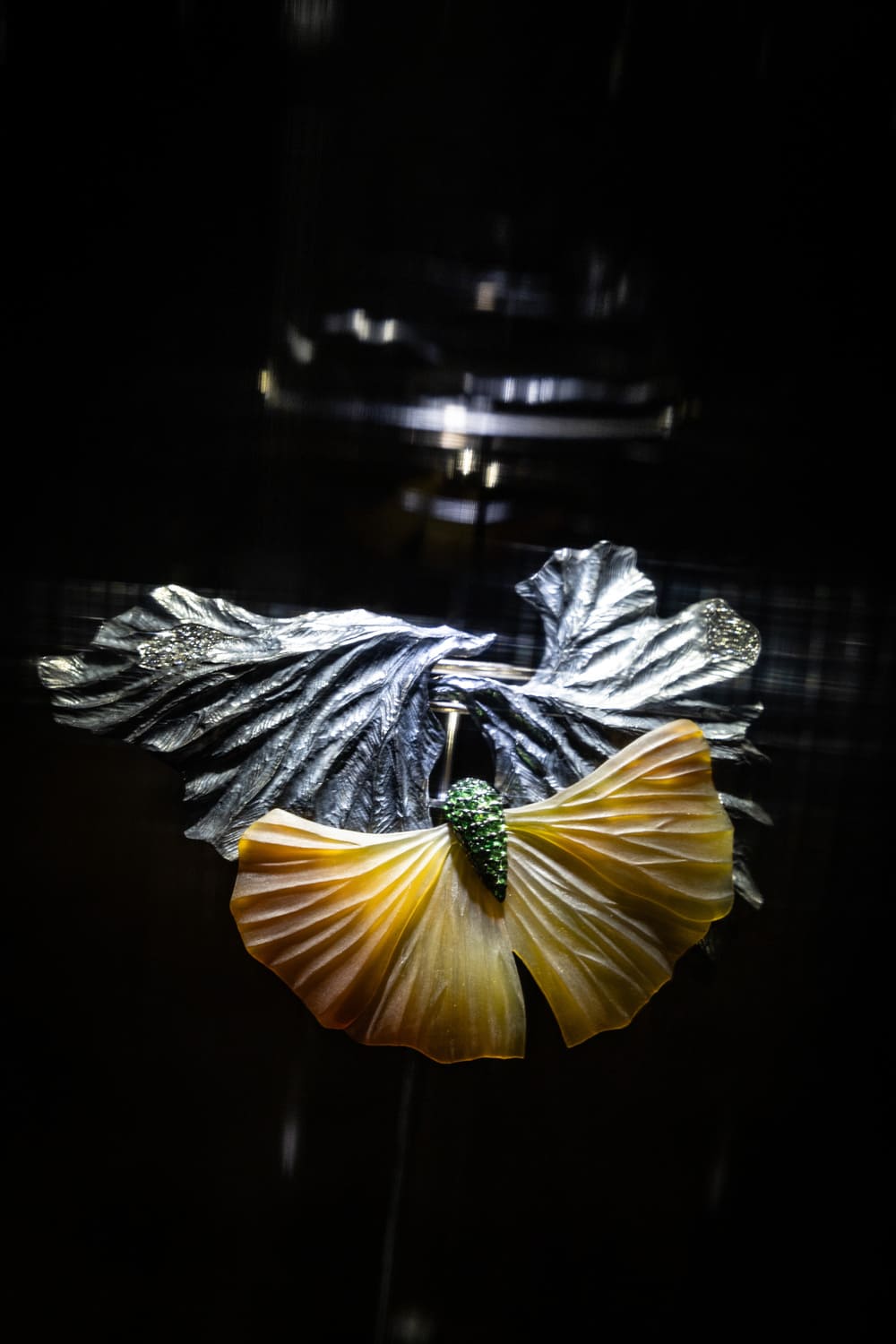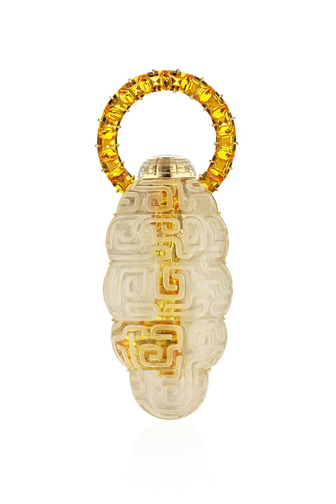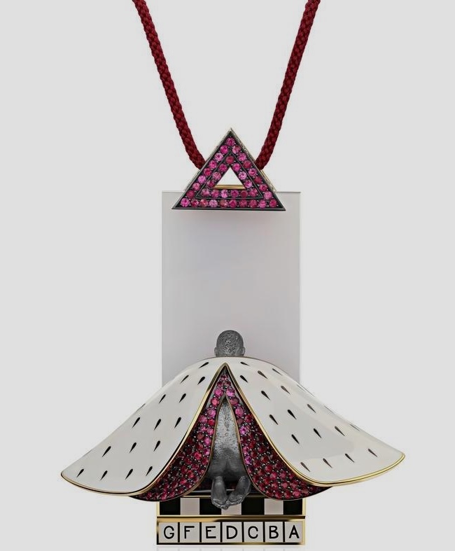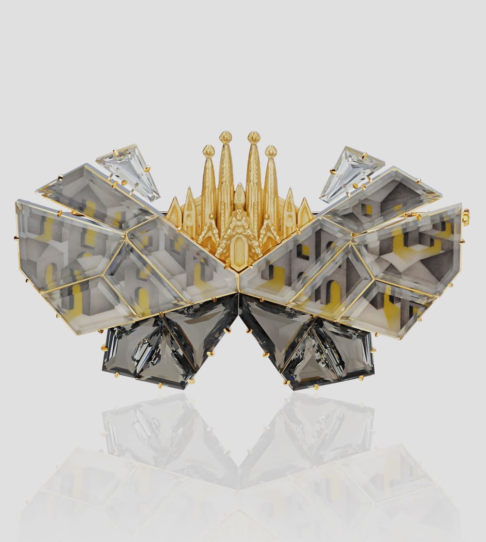 Помимо классических технологий обработки драгоценных камней и металлов, автор активно экспериментирует с материалами, такими как стекло и титан, демонстрируя их новый потенциал в рамках художественного выражения.