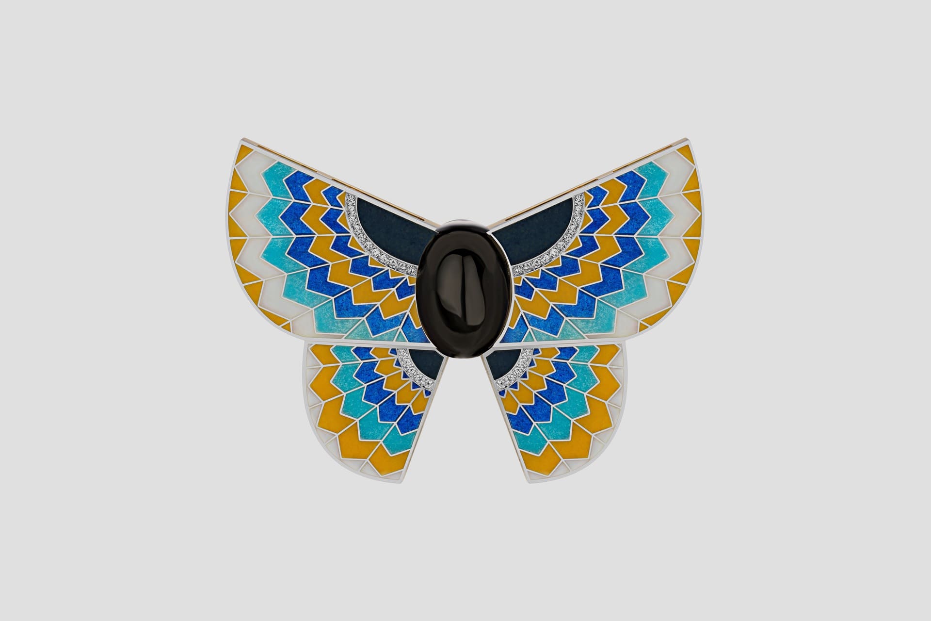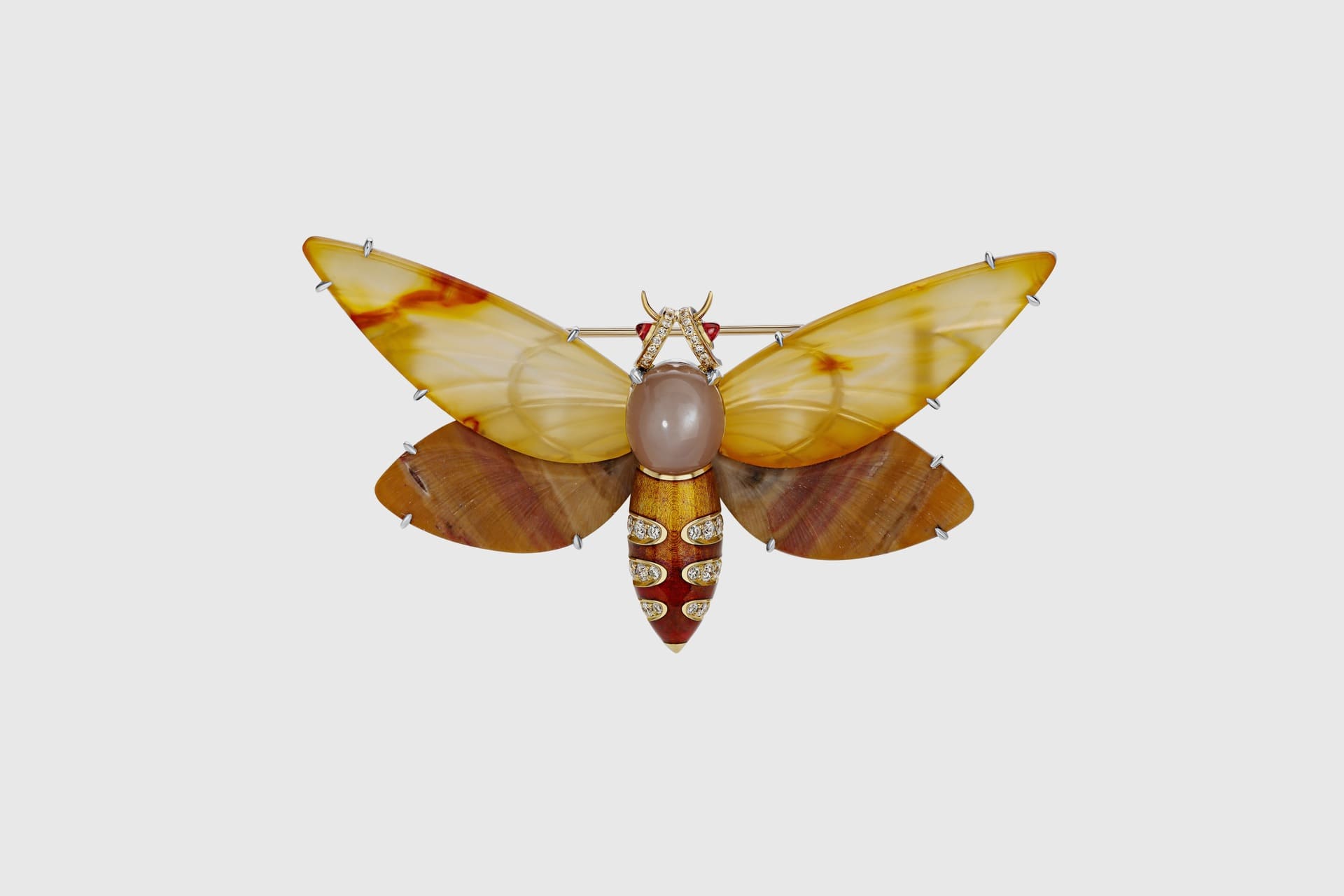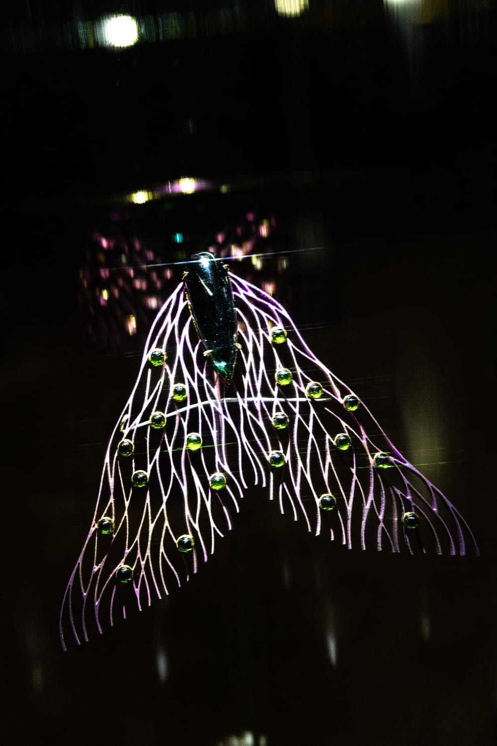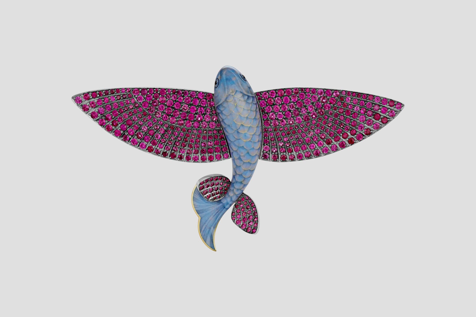 Помимо классических технологий обработки драгоценных камней и металлов, автор активно экспериментирует с материалами, такими как стекло и титан, демонстрируя их новый потенциал в рамках художественного выражения.