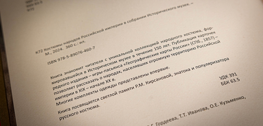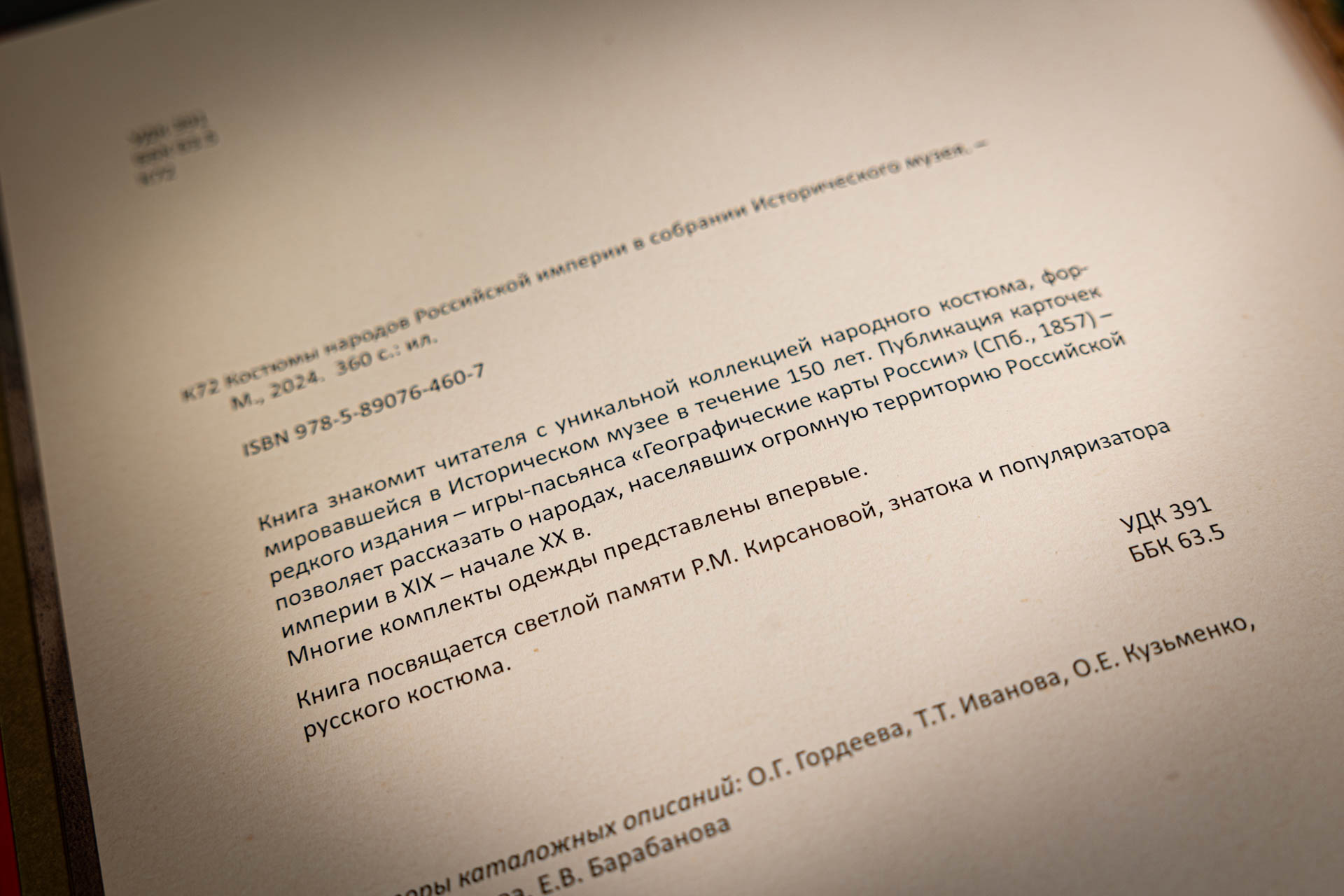 Книга знакомит читателя с уникальной коллекцией народного костюма, формировавшейся в Историческом музее в течение 150 лет. Публикация карточек редкого издания – игры-пасьянса «Географические карты России» (СПб., 1857) – позволяет рассказать о народах, населявших огромную территорию Российской империи в XIX – начале XX в. Многие комплекты одежды представлены впервые.