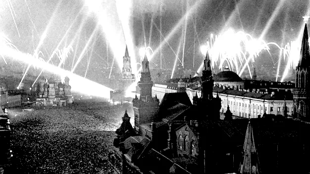 Раздается лязг железных гусениц по брусчатке – на площади появляются