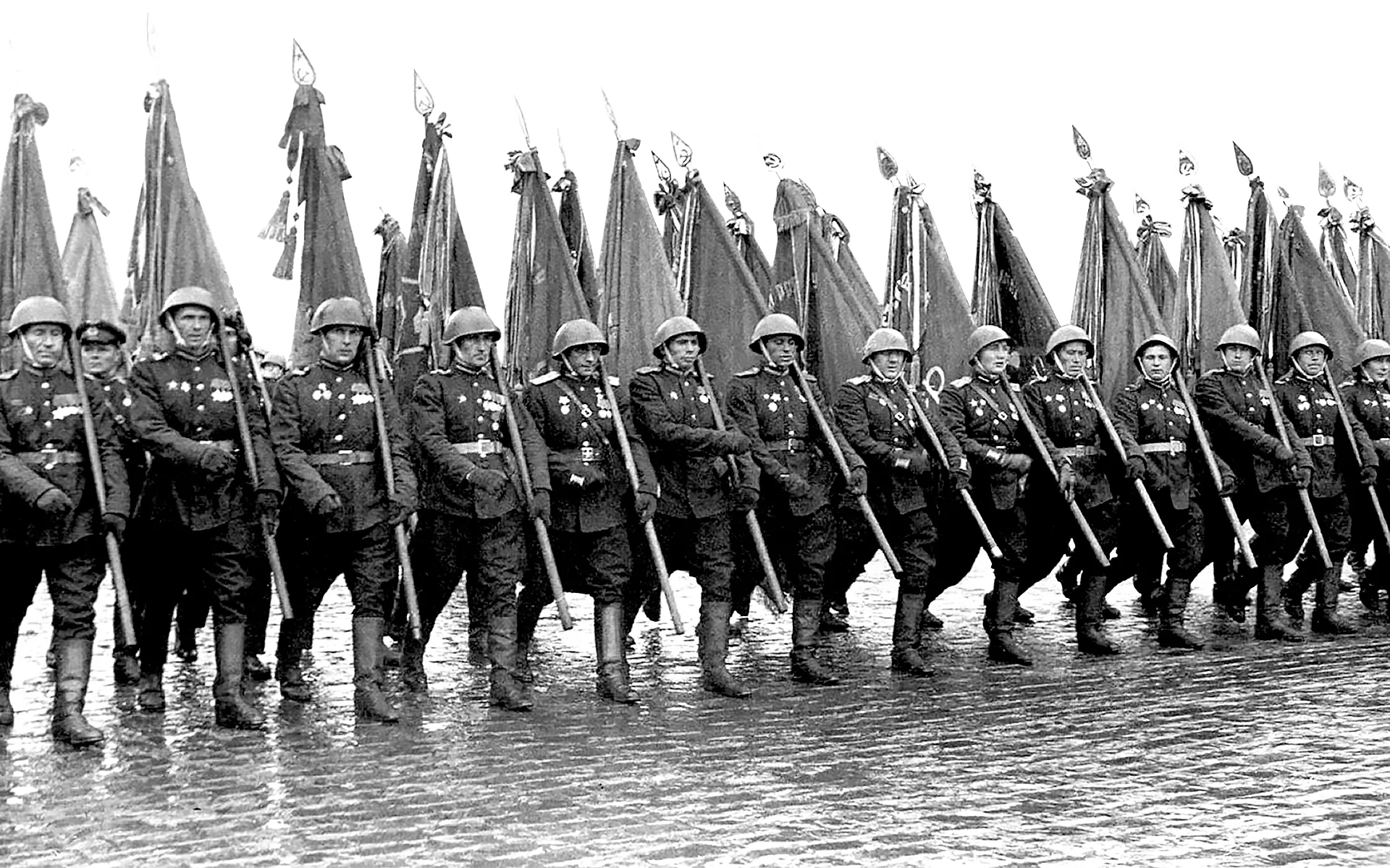 На площадь вступают войска Московского гарнизона во главе с командующим